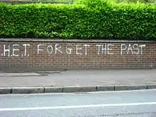 Graffiti against the Historical Enquires Team on Haddock's native Mount Vernon estate