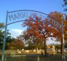 The Markley cemetery [6] was begun in 1888 next to the old Plum Grove School. The first burial there was of M.C. Norfleet. After ten years, the burial ground was no longer being cared for, so in 1890, a group of citizens from the surrounding rural community including J. C. Calvin, J.W. Cox, R.E. Currie, S.G. Dean, Nelson Owen, M.A. Stewart, Andy and Ike Tinney, J.M. Wallace, and W.M. Watson, organized an annual "Graveyard Working Day".[7] The working day was scheduled for the first Saturday in May. During this time, residents from the surrounding area came by wagon and horseback. After cleaning the area, the practice of placing flowers on the graves was performed. In 1925, the observation was changed to the first Sunday in May. Today, there is a cemetery association that provides care for the cemetery yet Decoration Day continues as an annual social event bringing dozens of people from far away to pay respect to those buried there. Some of the individuals honored each year include the graves of thirteen Civil War veterans: John F. Bussey, J.C. Butler, Jessie Byrd, R.E. Currie, George J. Lucas, J.D. Mankins, J.L. McDaniel, J.L. Norfleet, Nelson Owen, J.C. Stanley, James Stinnett, Cates Thompson, and David White.