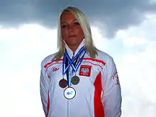 Marta Anna Walczykiewicz (Polish pronunciation: [ˈmarta valt͡ʂɨˈkjɛvit͡ʂ]; born 1 August 1987) is a Polish sprint canoeist who has competed since the late 2000s. She won eleven medals at the ICF Canoe Sprint World Championships with one gold (K-1 4 x 200 m: 2014), eight silvers (K-1 200 m: 2009, 2011, 2013, 2014, 2015; K-2 200 m: 2010, K-1 200 m relay: 2013, K-4 500 m: 2014) and a bronze (K-2 200 m: 2007).