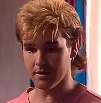 Martin forms an on-screen duo with the character of Lance Smart (Peter Vroom), Thomson said that the characters are Home and Away's answer to Laurel and Hardy.[5] Like Martin, Lance is not popular with females and even "their closest friends" think they are unattractive. They are portrayed as a pair of "yobbos and larrikins" who work at a local oyster farm. The characters have a general dislike for the local males who enjoy surfing. They become their "great nemesis" because they manage to get "all the girls". As Martin believes he is "the most irresistible male in Summer Bay", Lance is so impressed by Martin that he believes he is actually irresistible.[9] Thomson said that the duo "stand out a lot" because of their over-the-top nature. While Vroom felt they rarely got "serious" scenes because they were mostly involved in comedic storylines.[9] Vroom criticised the writing Martin and Lance received because he did not think it represented how young people behave. Home and Away's critics also scrutinised the writing "for a lack of realism".[10] Vroom said "Usually Lance and Martin are drinking yobs, but they're not allowed to swear which is not so realistic."[11] While Thomson said the serial's early evening time slot often caused dialogue to be censored. Vroom added that "Lance and Martin are definitely drinkers and if it wasn't for the timeslot they would be into marijuana too." Though he defended the characters because they had to be responsible and cater for young viewers.[10]