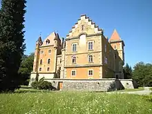 Throughout the mid 19th century, again the castle was under numerous hands, until it was bought by Arthur Schlippenbach. He enlarged the castle as it stands today and refurbished it with decor of the period in 1877.[2] In 1881, Count Schlippenbach died in Cairo.