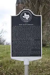 The school was founded in Crockett, Texas in 1886 by the Presbyterian pastor Revered Richard Allen, and his wife Mary E. Allen.[2][3] At the time, it was the first and only school that was open to the nearly 200,000 freed black women in the state.[4]