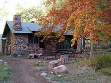 The Harvey Company got the concession in 1922 to operate a camp at the bottom of the Grand Canyon. Considering the Phantom Ranch's location, Colter's use of on-site fieldstone and rough-hewn wood was deemed the only practical thing for the permanent buildings that replaced tents.[16] In the following years this innovative work became a de facto model for subsequent National Park Service and Civilian Conservation Corps structures, influencing the look and feel of an entire genre of parkitecture, often called National Park Service Rustic. Her structures at the Grand Canyon set the precedent for using on-site materials and bold, large-scale design elements.