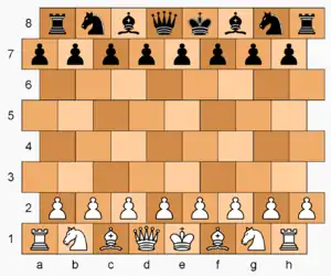 Masonic chess is a chess variant invented by George R. Dekle Sr. in 1983.[1][2] The game is played on a modified chessboard whereby even-numbered ranks are indented to the right—resembling masonry brickwork. The moves of the pieces are adapted to the new geometry; in other respects the game is the same as chess.