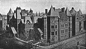 Massachusetts Homeopathic Hospital was a homeopathic institution in Boston, Massachusetts, at which the first successful kidney removal in New England was performed.[1] Established by an act of the Massachusetts legislature in 1855, the hospital opened its doors in 1871 at a site in Jamaica Plain. In 1874 it moved into a newly built facility in the South End of Boston. Over the next 30 years its facilities in that area were expanded, and in 1908 it opened a satellite facility in Brighton for the treatment of contagious diseases.[2] The hospital eventually abandoned homeopathic practices, and in 1929 became part of Massachusetts Memorial Hospitals. This was eventually merged into the Boston University Medical Center, now part of Boston Medical Center. The hospital's main building survives, and is known as the Talbot Building; it now houses the Boston University School of Public Health.