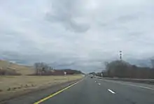 After almost 50 miles (80 km) of relative ruralness, I-90 has an interchange that leads to the separate routes of I-91 and US 5 at exit 45 in West Springfield;[9] it passes over the Connecticut River before reaching Route 33 at exit 49 and I-291 at exit 51, both in Chicopee. The turnpike passes through Ludlow at exit 54 before crossing the Quaboag River to exit 63 in Palmer.[9][10] The turnpike first enters Worcester County in Sturbridge, where exit 78 serves as the eastern terminus of I-84.[15] In Auburn, exit 90 has a two-Interstate interchange with I-395 traveling southbound and I-290 traveling eastbound.[15] The Blackstone River flows underneath the turnpike in Millbury,[10] where it has an interchange with Route 146 and a second direct connection to US 20 at exit 94.[9] Entering Middlesex County in Hopkinton, it has an interchange with I-495 at exit 106.[9] The turnpike crosses the Sudbury River between exit 111 at Route 9 and exit 117 at Route 30, all located within Framingham.[10][9] The last connection with another Interstate Highway on the Western Turnpike is located in Weston, at the I-95 and Route 128 concurrency.[9] This multipiece interchange is collectively referred to as the "Weston tolls".[16] Before being renumbered exit 123 in both directions, exit 14 was an eastbound exit and westbound entrance, and exit 15 was a westbound exit and eastbound entrance; prior to demolition, a mainline toll plaza existed for through traffic.[9] Following the removal of the toll plazas, exit 15 was reconfigured into exit 15A (now exit 123A) for I-95 and Route 128, and exit 15B (now exit 123B) toward Route 30.[17] At this junction, the turnpike crosses over the Charles River.[10]