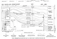 The Panhandle Field is a structural trap, characterized by the Amarillo-Wichita Uplift or sometimes referred to as the buried "Amarillo mountains", which is bounded by three sedimentary basins: the Anadarko Basin to the north, the Dalhart Basin to the west, and the Palo Duro Basin to the south.[16][17] This tectonic uplift occurred in the Late Mississippian to Early Pennsylvanian time and was sufficient to expose and erode the Precambrian granitic and rhyolitic basement complex forming a granitic wash, which was subsequently submerged and buried by marine sediments in the Permian (specifically, the Wolfcampian carbonates).[18][17] The granitic wash and these marine sediments form the pay zones but the "gas, oil and water cut across formational boundaries".[19] The Wolfcampian marine sediments include an arkosic lime, an arkosic dolomite, the Moore County Limestone, the White Dolomite, and the Brown Dolomite.[19] The Leonardian Panhandle Lime, or Wichita, and Red Cave overlay these Wolfcampian sediments, with the anhydrite and dense-dolomite nature of the Wichita forming the reservoir seal.[14][20] The source for the oil, gas and helium accumulations are the sedimentary rocks of Pennsylvanian age in the Palo Duro and Anadarko Basins.[21][22] The helium would have been derived from uraniferous rocks and radiogenic in origin.[23] The Panhandle Field has a pressure which is about 400 psi lower than the surrounding basins, which allows gases to migrate into it.[24] Although low, the pressure is at normal hydrostatic pressure relative to the water table.[25] Charles N. Gould mapped the John Ray Dome, which was drilled by the Amarillo Oil Company in 1918 resulting in the Panhandle Field discovery.[21] Drilled to a depth of 2,395 feet, the well, No. 1 Masterson C, produced 5 million cubic feet of gas per day at a pressure of 420 psi.[26] Oil in the Panhandle Field was discovered in 1921 with Gulf Producing Company's No. 2 Burnett well, producing 200 barrels per day.[27]