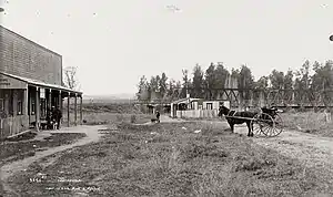 Puketapu was recognised as a potential source of totara as early as 1903[12] and the company was advertising for bush cutting[13] and construction of a 1.5 mi (2.4 km) tramway in 1905.[14] The sawmill must have been operating by 1906, when they experimented with floating sawn timber down the river.[15] Another sawmill was also operating nearby in 1906,[16] which possibly the company had taken over by 1908,[17] when the tramway extended for 5 mi (8.0 km).[18] The company was in liquidation in 1909,[19] but was taken over by Pukuweka Sawmills. The bush tramway was linked to the main line and had two locomotives in 1911.[20][21] The last year the mill was recorded as using the railway siding was 1915.[22]