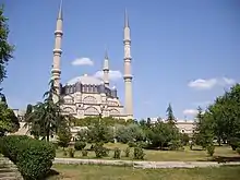 The Selimiye Mosque in Edirne, Turkey, was built by Mimar Sinan to provide a space where the mihrab could be see from anywhere inside the building. The very large central space is accordingly arranged as an octagon, formed by eight enormous pillars, and capped by a circular dome of 31.25 metres (102.5 ft) diameter and 43 metres (141 ft) high. The octagon is formed into a square with four semidomes, and externally by four exceptionally tall minarets, 83 metres (272 ft) tall. The building's plan is thus a circle, inside an octagon, inside a square.[74]