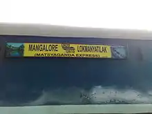 Matsyagandha literally means "Smell of Fish" - the appellation was given since the train runs along the fishing coast of Western India adjoining the Arabian Sea–Konkan Railway route. The name is based on a name of character from the epic Mahabharata. It is a story of Satyavati who smell like a fish (Matsyagandha). Matsyagandha is also a famous Marathi musical play written by Vasant Kanetkar.[5] The train has become important link and emotional chord for natives of Dakshina Kannada, Udupi and Uttara Kannada districts living in Mumbai and surrounding cities.