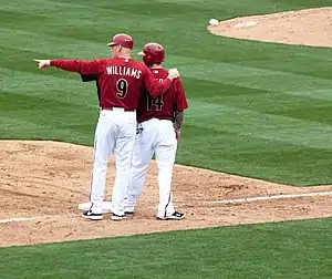 Williams was an original member of the Arizona Diamondbacks from the club's inaugural season in 1998.[4] He holds the Diamondbacks record for the most RBIs in one season with a total of 142 during 1999; the record has since been tied by Luis Gonzalez in 2001, but has never been exceeded.[5]