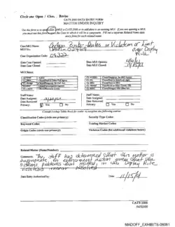 MUIs are tracked in the SEC's computerized Case Activity Tracking System (CATS).[8] Some information related to MUIs may also exist or have existed in the past in other SEC computer systems, such as the Super Tracking and Reporting System "STARS", the Name Relationship Search Index (NRSI), and the "Hub".[9]