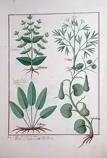 Matthaeus Platearius was a physician from the medical school at Salerno, and is thought [1] to have produced a twelfth-century Latin manuscript on medicinal herbs titled "Circa Instans" (also known as "The Book of Simple Medicines"), later translated into French as "Le Livre des simples medecines". It was an alphabetic listing and textbook of simples that was based on Dioscorides "Vulgaris", which described the appearance, preparation, and uses of various drugs. It was widely acclaimed, and was one of the first herbals produced by the newly developed printing process in 1488. Ernst Meyer considered it equal to the herbals of Pliny and Dioscorides, while George Sarton thought it an improvement on "De Materia Medica".[2][3]