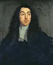 Locke, with Christopher Gibbons (the son of Orlando), composed the score for Cupid and Death, the 1653 masque by Caroline-era playwright James Shirley.[2] Their score for that work is the sole surviving score for a dramatic work from that era.[3] Locke was one of the quintet of composers who provided music for The Siege of Rhodes (1656), the breakthrough early opera by Sir William Davenant.[4] Locke wrote music for subsequent Davenant operas, The Cruelty of the Spaniards in Peru (1658) and The History of Sir Francis Drake (1659).[5] He wrote the music for the processional march for the coronation of Charles II.[6]