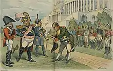 In late 1862, Union forces, Quay's among them, prepared for an attack on Fredericksburg, Virginia, on the road to Richmond, the Confederate capital. The acceptance of Quay's resignation was received on the eve of the Battle of Fredericksburg, and he refused to leave his men, persuading commanders to accept him as a voluntary aide-de-camp.[23][24] Quay was warned by the chief surgeon not to join in the battle because of his health, and was told he would die like a fool. He replied, "I'd rather die like a fool than live like a coward."[25] The attack was a disaster for Union forces, as the Confederate soldiers were well-emplaced, and could not be dislodged. Quay's troops were sent to attack the Confederate positions on Marye's Heights; hidden behind a stone wall, Confederate forces were able to unleash a torrent of fire against the attackers. Astride a horse, Quay urged his men forward, and they were able to get within 25 or 30 yards (23 to 28 meters) of the wall before retreating, with half the soldiers dead or wounded. Quay was not wounded, and his conduct earned him the Medal of Honor.[23][24]