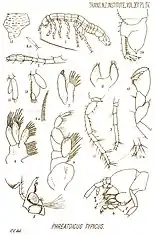 ![]() Extant Phreatoicus typicus, closely related with Protamhisopus wianamatthensis |