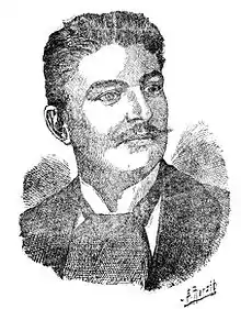At the start of 1897 Max Régis and his brother Louis organized student protests against the appointment of a Jewish professor of Law named Lévy.[6] Max Régis gained the nickname "beau Max".[7] He was "tall, handsome, strong and energetic", and charismatic.[8] As a result of his activism he was suspended from university for two years. Soon after he was named president of the Ligue Antijuive (Anti-Jewish League), and on 14 July 1897 initiated the antisemitic newspaper L'Antijuif d'Alger.[6] L'Anti-Juif had a print run of 20,000 copies, a large number for Algeria at this time.[9] The Algiers Anti-Jewish League became important among the settlers. It organized petitions and demonstrations against Jews and government officials.[1] Max Régis directed the Fighting Radicals, an anti-capitalist and socialist political group.[2]