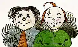 Max and Moritz: A Story of Seven Boyish Pranks (original: Max und Moritz – Eine Bubengeschichte in sieben Streichen) is a German language illustrated story in verse. This highly inventive, blackly humorous tale, told entirely in rhymed couplets, was written and illustrated by Wilhelm Busch and published in 1865. It is among the early works of Busch, yet it already featured many substantial, effectually aesthetic and formal regularities, procedures and basic patterns of Busch's later works.[1] Many familiar with comic strip history consider it to have been the direct inspiration for the Katzenjammer Kids and Quick & Flupke. The German title satirizes the German custom of giving a subtitle to the name of dramas in the form of "Ein Drama in ... Akten" (A Drama in ... Acts), which became dictum in colloquial usage for any event with an unpleasant or dramatic course, e.g. "Bundespräsidentenwahl - Ein Drama in drei Akten" ("Federal Presidential Elections - A drama in three acts").[2]