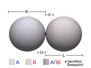 for all dimensions n. The illustration on the right shows X as the sum of two 2-spheres K and L. For this specific case, using the result from above for 2-spheres, one has