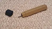 Different sizes of lead diameters are available to accommodate various preferences and pencil builds, as shown in the table below. The more common lead sizes are 0.5 mm and 0.7 mm, whose line widths provide a favourable balance between precision and strength. Less common lead sizes can range from 0.2 mm up to 5.6 mm. Pentel has also previously demonstrated a prototype 0.1 mm pencil.[11] Pencils with sub-millimeter leads can usually hold multiple leads at the same time, reducing the frequency of refills. One exception was the Pentel 350 E, possibly Pentel's first mechanical pencil,[12] which could only hold a single stick of 0.5 mm lead. Refill leads can be bought in small tubes and inserted into the barrel as needed.