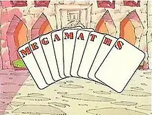 Megamaths is a BBC educational television series for primary schools that was originally aired on BBC Two from 16 September 1996 to 4 February 2002. For its first four series, it was set in a castle on top of Table Mountain, populated by the four card suits (Kings, Queens and Jacks/Jackies, and a Joker who looked after children that visited the castle and took part in mathematical challenges). There were two gargoyles at the portcullis of the castle named Gar and Goyle who spoke mostly in rhyme, and an animated dragon called Brimstone who lived in the castle cellar (with his pet kitten, Digit). Each episode featured a song explaining the episode's mathematical content.
