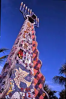 A series of eight artworks linking the four corners of United States was created by Alexenberg as the official artist of Miami’s Centennial[18] in 1996 when he was dean at New World School of the Arts. Sponsored by National Endowment for the Arts and American Airlines with the participation of the President of United States,[19] Alexenberg's artworks connected Miami, San Diego, Seattle, and Portland (Maine).[20] Mayors of these four cities came together in Miami for the opening of his exhibition of multimedia artworks and models of four living sculptures to be photographed as one from outer space.[21]
