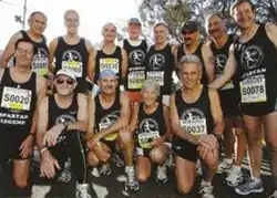 Spartans are runners who have completed 10 or more Melbourne Marathons and are recognised today by their distinctive green, gold, red, maroon or navy running singlets. Every Spartan has their own personalised race number. The singlet is worn with pride by all Spartans as a sign of their dedication to marathon running and the Melbourne Marathon in particular. Club records reflect over 1400 males and 150 females who have qualified as Spartans. Most come from Victoria but there are many from other states with at least two from Japan.