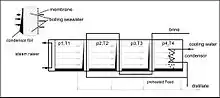 Condenser: The vapour produced in the final evaporation–condensation stage is condensed in the condenser, using the coolant flow (e.g. seawater).