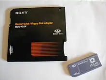 A simple adapter allows Memory Stick Duo to be used in devices designed to accept the original Memory Stick form factor.