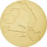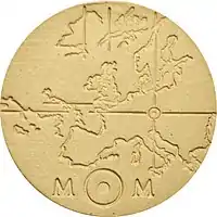 A token (a disc 6,5 cm in diameter) will be given to all participants of the MOM project. On its limited surface, the token indicates a spot on Earth with a precision of some ten meters. The front side depicts the outline of Europe, with a mark representing Hallstatt's location. The backside shows the position of the entrance to the MOM relative to the shape of the Hallstatt Lake. In addition, a multi-cubic shape representing the crystalline structure of the mine's salt is included. Due to the design of MOM and the token, the archive can only be retrieved by a society with a similar technical and physical understanding of the world to modern-era humans. This is intended to ensure that techniques to decode the content are available to future finders.