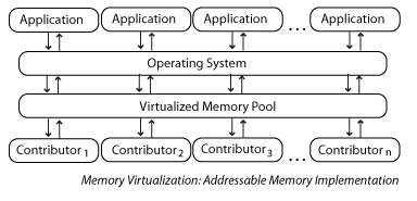 Memory virtualization implementations are distinguished from shared memory systems. Shared memory systems do not permit abstraction of memory resources, thus requiring implementation with a single operating system instance (i.e. not within a clustered application environment).