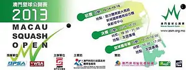 - "PSA World Tour | Tournaments | Tournament Details | Macau Open 2013". www.psaworldtour.com. Archived from the original on 26 June 2013.
