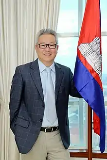 As an oknha, he has insisted on the importance of virtuous leadership in Khmer society, through many publications in virtue ethics and business.[24] In partnership with the Office of United Nations High Commissioner for Human Rights in Cambodia, he defends the idea that businesses should care more about human rights in Cambodia.[25]