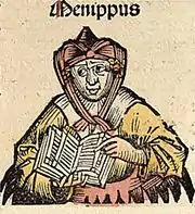 Menippus of Gadara (/məˈnɪpəs/; Greek: Μένιππος ὁ Γαδαρεύς Menippos ho Gadareus; fl. 3rd century BC) was a Cynic satirist. The Menippean satire genre is named after him. His works, all of which are lost, were an important influence on Varro and Lucian, who ranks Menippus with Antisthenes, Diogenes, and Crates as among the most notable of the Cynics.