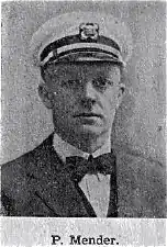 Peter Mender left Estonia in 1907 to find work in Vladivostok. While there he met an Estonian woman called Adelaide Lillestern and they married in 1912. Capt. Mender and Adelaide Mender (1893–1976) had three daughters, Erika Mender Kaldveer (1912–2003), Adelaide Mender Harkna (1915–1988) and Leida Mender Möldre (1920–1982). Mender left Vladivostok in 1919 and began work in Shanghai, where he stayed until early 1938. After returning to Estonia, Mender wrote a book about his life in the Far East.[24]