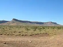 In the English-language geomorphic and geologic literature, other terms for mesa have also been used.[1] For example, in the Roraima region of Venezuela, the traditional name, tepui, from the local Pomón language, and the term table mountains have been used to describe local flat-topped mountains.[5][6] Similar landforms in Australia are known as tablehills, table-top hills, tent hills, or jump ups (jump-ups).[7][8][9] The German term Tafelberg has also been used in the English scientific literature in the past.[10]