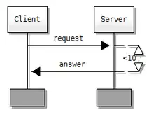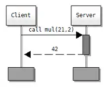 - Control flow: horizontal arrow with the 'call' prefix, dashed arrow for reply symbol, method and suspension symbols in between.