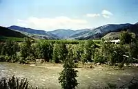 Methow was founded in 1889 by W.A. Bolinger when he moved his store from the former mining boom-town at Squaw Creek (approx. 4 miles south).[4] It is named after the Methow people, an Interior Salish people who lived in the area. The name "Methow" itself comes from the Okanagan placename /mətxʷú/, meaning "sunflower (seeds)". The unincorporated community has its own community center, post office, fire station, church, water system, and two parks. The Methow Store, originally built by W.A. Bolinger, is no longer in business as of 2009, nor is the town's restaurant. The town is one of the principal starting points for rafting along the Methow River.