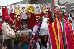 Negritos is danced in the Totonacapan region in Veracruz and Puebla.[16] The Danza de los Quetzales is performed in Puebla. The Huehues dance is performed by the Totonaca and is similar to the Quetzales dance. The headdress is smaller and less ostentatious.[17]