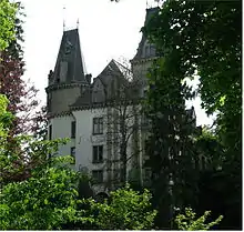 After buying the property in 1855, the Prince of Arenberg demolished it in 1880 and built a new castle in Neo-Renaissance style. In 1971, the State architect Charles Arendt carried out restoration work. In 1974 the property was sold to Alphonse Spiegelburg.[2] After his death, important restoration work was carried out from 2014 to 2016, funded by the State. The castle and surrounding area is now in the property of the Clasen family.[3][4]