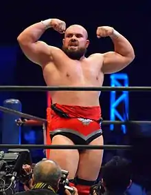 Aaron Frobel[1] (born December 13, 1986) is a Canadian professional wrestler and promoter, better known by his ring name Michael Elgin. He most recently worked for Pro Wrestling Noah, where he was a one-time GHC Tag Team Champion with Masa Kitamiya. He is best known for his work with New Japan Pro-Wrestling (NJPW), where he is a former NEVER Openweight Champion. In NJPW, he was also a one-time IWGP Intercontinental and a one-time NEVER Openweight 6-Man Tag Team Champion. He is also known for his work in Ring of Honor (ROH), where he is a one-time ROH World Champion.[4] He has also worked for the Southern California-based company Pro Wrestling Guerrilla, where he is a one-time PWG World Tag Team Champion with Brian Cage.