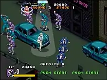 Michael Jackson's Moonwalker[lower-alpha 1] is an arcade video game by Sega (programming) and Triumph International (audiovisuals), with the help of Jackson which was released on the Sega System 18 hardware. The arcade has distinctively different gameplay from its computer and console counterparts, focusing more on beat 'em up gameplay elements rather than platform gameplay.