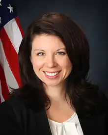 Michelle L. Downey Caldier (born 1976)[2] is an American dentist, professor, and politician serving as a member of the Washington House of Representatives, representing the 26th district since 2015. A member of the Republican Party, Caldier was elected to the Washington House of Representatives in 2014, defeating incumbent Democrat Larry Seaquist by a narrow vote margin with her election giving Washington Republicans one of four pickups in the House in the 2014 election.[3] Her district includes the cities of Bremerton, Gig Harbor and Port Orchard.