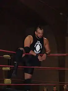 In 2007, Bauer joined the Big Business faction with Arion and Brian Milones, and were managed by Cherry Payne.[4][5] On March 30 Bauer and Arion won the CW Tag Team Championship by defeating Jason Blade and Kid Mikaze, but then lost it to Blade and Mikaze on May 18.[5][7][9][10] On October 19, Bauer and Arion defeated Bryan Logan and Brian Fury.[11] At the end of 2007 and start of 2008, Big Business were involved in a rivalry with Brian Fury, with all members taking him on in both singles and tag team matches.[12][13] Bauer later broke away from Big Business, and began competing in singles matches, before forming a short-lived tag team with Chase Del Monte.[14][15] On December 5, Bauer competed in a six-way number one contender's match, but it was won by "Big" Rick Fuller.[16] In 2009, Bauer formed a tag team with Tommaso Ciampa.[17][18]