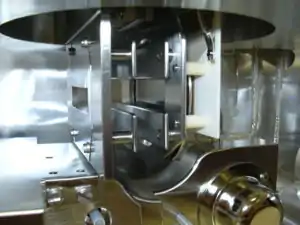 This is an assembly of three microchannel plates with channels aligned in a Z shape. Single MCPs can have gain up to 10,000 (40dB) but this system can provide gain more than 10 million (70dB).[3]