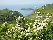 Middle Mouse (Welsh: Ynys Badrig - Patrick's island) is an uninhabited island situated 1 kilometre (1000 yards) off the north coast of Anglesey. It is notable as the northernmost point of Wales. The island measures a maximum of 207 metres (226 yards) by 110 metres (120 yards), with a maximum area of 3.7 acres and has a maximum altitude of 16 metres (52') above sea level. It is one of a chain of three islands off the north of Anglesey, the others being Ynys Amlwch and Maen y Bugail.