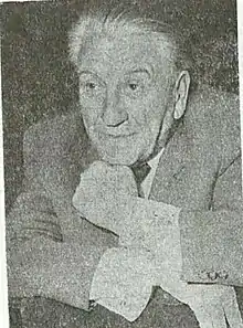 Davidoglu's literary debut was the 1936 radio drama Marinarul smirniot; his first success was Omul din Ceatal, written in 1943 and staged in 1947. Other plays included Minerii (1949, Cetatea de foc (1950), Horia (1955), Ochii dragi ai bunicului (1970), Străbunul (1971), Platforma magică (1973), Cele trei Marii din vale, Noi, cei din vale, Din pragul veșniciei (1983) and Suflete în furtună (1986). Under the communist regime, he won the Romanian Academy's prize in 1949, the State Prize in 1950 and 1953 and the Bucharest Writers' Association Prize in 1983.[1] Davidoglu died on August 17, 1987;[1] he was survived by his poet wife Ecaterina Cavarnali-Davidoglu, whose first-ever volume was only printed in 1998, when she was aged 80.[2] Of mixed Bessarabian Bulgarian and Gagauz heritage, she had been the sister of poet-editor Vladimir Cavarnali.[3]