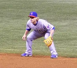 Though used mostly as a bench player in 2008, Fontenot also started 49 games, many of which were in June and July while Alfonso Soriano was on the disabled list.[30][31] On May 3, he had three hits and set a career high with four RBIs, including a three-run home run against Kyle Lohse in a 9–3 victory over the St. Louis Cardinals.[32] He made it to first base in 14 straight games from June 25 through July 18.[1] Fontenot hit home runs in consecutive games against the Cincinnati Reds on July 8 and 10.[30] Following the All-Star Break, Fontenot batted .360.[1] He had the first pinch-hit home run of his career on August 28 against Ryan Madson, starting a five-run rally for the Cubs in their eventual 6–4 triumph over the Philadelphia Phillies.[1][33] In 119 games (243 at bats), he batted .305 with 42 runs scored, 74 hits, nine home runs, and 40 RBIs.[1] For the second year in a row, the Cubs won the NL Central.[34] This time, Fontenot played every game of the NLDS against the Los Angeles Dodgers, even starting at second base in Game 3. He had two hits in six at bats, but the Cubs were swept by the Dodgers.[29]