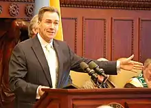 He was the Democratic nominee for lieutenant governor of Pennsylvania in the 2014 election, running with Democratic gubernatorial nominee Tom Wolf.[5] The Wolf/Stack ticket defeated the Republican Tom Corbett/Jim Cawley ticket in the 2014 gubernatorial election. Stack took the oath of office January 20, 2015.[6][7] While serving as lieutenant governor, Stack had a high-profile falling out with governor Tom Wolf, owing in part to Stack's alleged mistreatment of staff and a difference in management styles with Wolf.[8]