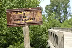 The line itself is marked off by a series of 1,292 identical signs which are placed at intervals across the peninsula. The north facing side of the signs are written in Korean and Chinese,[6] and in Korean and English on the south facing side. The signs are now aging and rusting.[7]